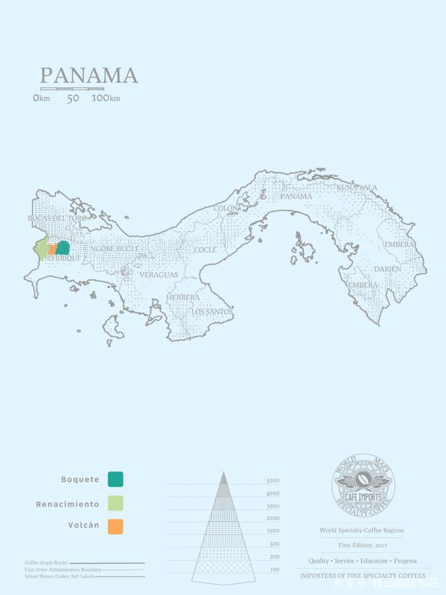 巴拿马的咖啡种植主要集中在西部高地的 Boquete、Volcan、Renacimiento 等地区,其中波奎特山谷(Boquete)和巴鲁火山(Volcan Baru)周边最为人熟知。它们同属奇里基省,位于咖啡带的核心地带,拥有肥沃的火山土壤与古老森林。波奎特镇坐落在巴鲁火山东侧,海拔约 1000 至 2000 米的高原上,迎着加勒比海的暖湿气流,背靠大西洋的寒流,地势高而陡峭。这里的巴鲁火山国家公园(Volcan Baru National Park)是生态保护区,拥有丰富的生物多样性与七种微型气候。全年被薄雾笼罩、雨量充沛的环境,孕育出极佳的咖啡种植条件。